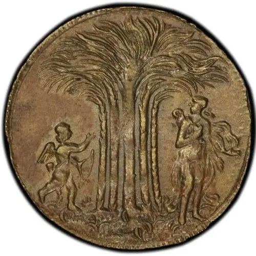 | Obverse description | Two people, with each standing on one side of a tree. |