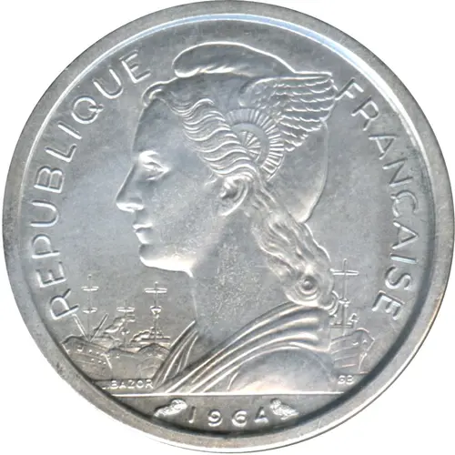 | Obverse lettering | REPUBLIQUE FRANÇAISE L.BAZOR GB 1964 (Translation: French Republic) |