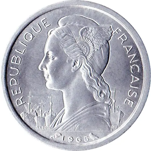 Historical Context: This 1 Franc coin was issued for French Somaliland between 1959 and 1965, a pivotal period preceding its 1967 independence as the French Territory of the Afars and Issas. As a French Overseas Territory, French Somaliland was undergoing significant political evolution amidst broader decolonization movements across Africa. The issuance of this denomination, part of a distinct colonial coinage series, underscored France's administrative and monetary authority, providing essential low-value currency for daily commerce within the territory's economy. These coins served as tangible symbols of French influence during a transitional era.
