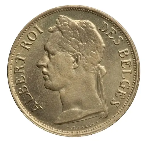 | Obverse lettering | ALBERT ROI DES BELGES Jul. Lagae (Translation: Albert King of the Belgians) |