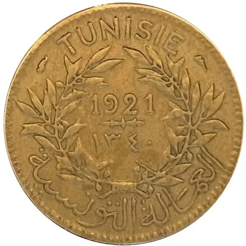 | Obverse lettering | TUNISIE 1921 ١٣٤٠ العمالة التونسية (Translation: Tunisia 1921-1340 Tunisian Labour) |