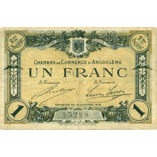 2me série | 2me série CHAMBRE DE COMMERCE D`ANGOULEME UN FRANC 1 | 1 IMP. KELLER FRÈRE, ANGOULÊME |