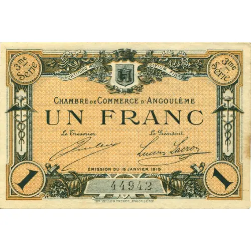3me série | 3me série CHAMBRE DE COMMERCE D`ANGOULEME UN FRANC 1 | 1 IMP. KELLER FRÈRE, ANGOULÊME |