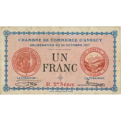 CHAMBRE DE COMMERCE D`ANNECY DELIBERATION DU 24 OCTOBRE 1917 UN FRANC IMP. B ARNAUD _ LYON _ PARIS |