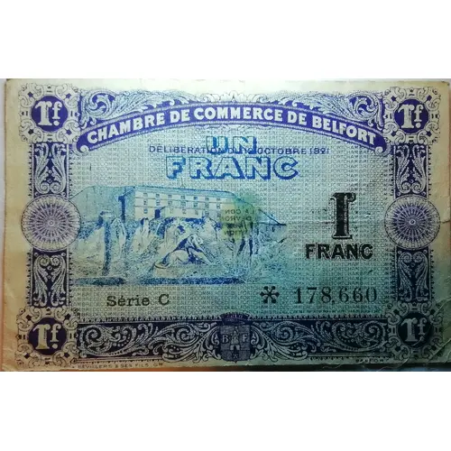 Chambre de commerce de Belfort Un franc Délibération du 12 octobre 1921 1 franc Série C. 178,660 E. DEVILLERS & SES FILS. GR. BELFORT |