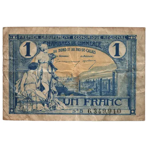 CHAMBRES DE COMMERCE DE ARMENTIÈRES DOUAI ARRAS DUNKERQUE AVESNES LILLE BÉTHUNE ROUBAIX BOULOGNE ST.OMER CALAIS TOURCOING CAMBRAI VALENCIENNES 5 Centimes Les billets en circulation seront échangeables contre des billets de la Banque de France jusqu`au 31 Décembre 1925. |