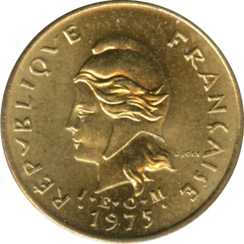 RÉPVBLIQVE FRANÇAISE R·JOLY I·E·O·M 1975 (Translation: French Republic) |