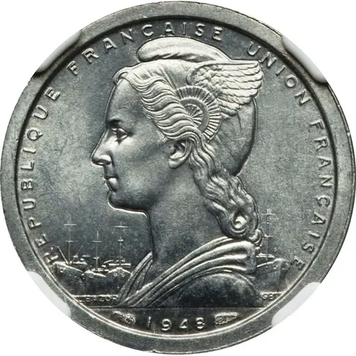 | Obverse lettering | RÉPUBLIQUE FRANÇAISE UNION FRANÇAISE L.BAZOR GB 1948 (Translation: French Republic French Union) |