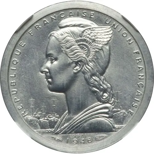 Historical Context: The 1948 French Cameroon 1 Franc Piedfort emerged during the French Fourth Republic, a period of post-World War II reconstruction and decolonization. French Cameroon was a United Nations Trust Territory administered by France. Piedforts are typically pattern or presentation pieces, not intended for circulation. Struck in aluminum, this issue symbolizes France's continued assertion of administrative and monetary authority over its overseas territories, highlighting the French Union's economic integration efforts amidst rising nationalist sentiments.