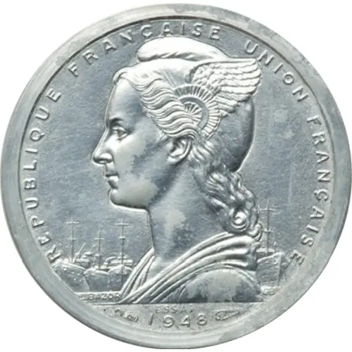 | Obverse lettering | REPUBLIQUE FRANÇAISE UNION FRANÇAISE L.BAZOR G B ESSAI 1948 (Translation: French Republic / French Union Trial) |