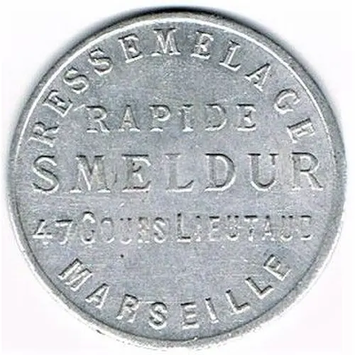 | Obverse lettering | RESSEMELAGE RAPIDE SMELDUR 47 COURS LIEUTAUD MARSEILLE |