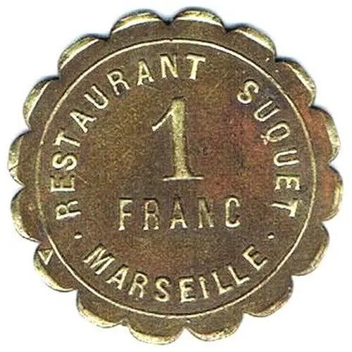 | Obverse lettering | RESTAURANT SUQUET 1 FRANC · MARSEILLE · |