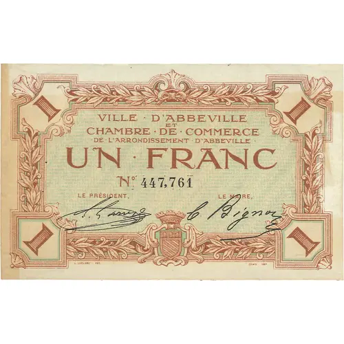1 | 1 VILLE D`ABBEVILLE ET CHAMBRE DE COMMERCE DE L`ARRONDISSEMENT D`ABBEVILLE UN FRANC N° 447,761 Le Président Le Maire 1 | 1 L.LECLERC FEC CHAIX - IMP |