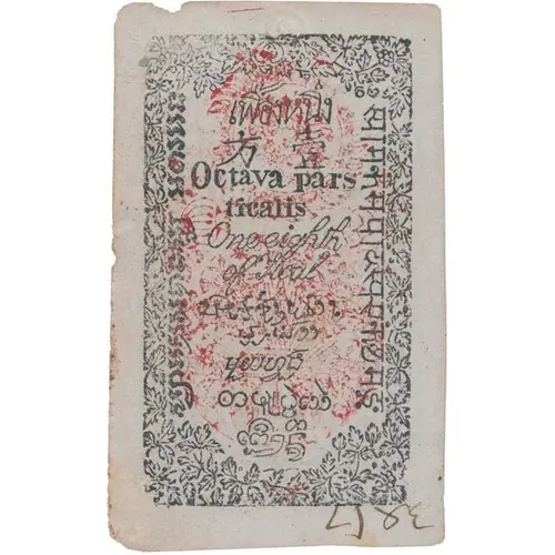 | Obverse lettering | เฟื้องหนึ่ง 方 壹 Octava pars ticalis One eight of Tical (Translation: One Fueang One Fueang One eight of Tical) |
