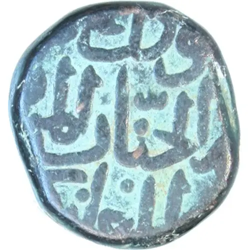 Artistry: Bahmani copper numismatics, including this 1 Gani, adheres to the aniconic tradition of Islamic coinage, prioritizing calligraphic design. Engraver signatures are virtually unknown. The stylistic school employs functional Naskh or Thuluth script, often executed with varying refinement due to the base metal and decentralized production. Legends typically convey the ruler's name and honorifics on the obverse, with the reverse bearing denomination, mint (if present), or religious invocations. Aesthetic emphasis lies solely on the legibility and arrangement of Arabic inscriptions.