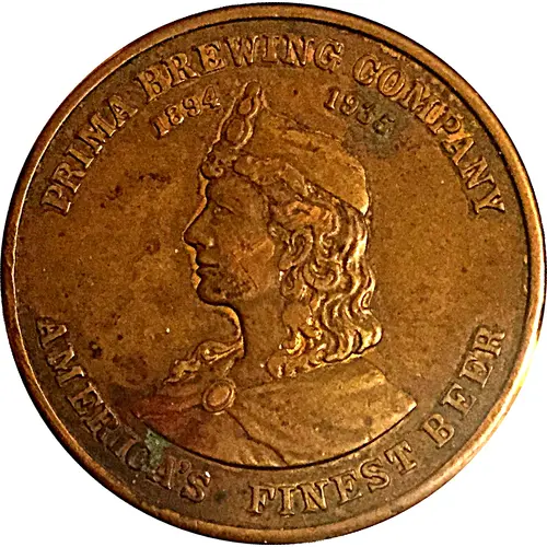 | Obverse lettering | PRIMA BREWING COMPANY 1894 1935 (female bust) AMERICA`S FINEST BEER |