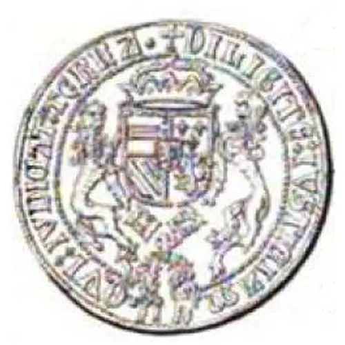 Crowned quartered arms of Austria-Burgundy supported by a lion on each side, the jewel of the Golden Fleece suspended below |