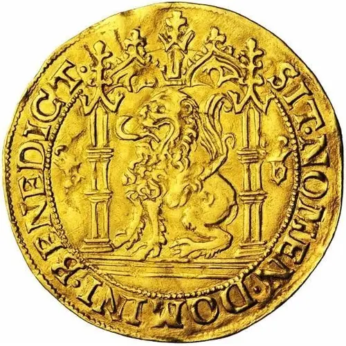 | Obverse description | Sitting lion facing left under gothic canopy, flanked by two gothic letters B. |
