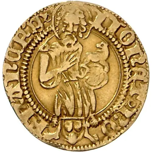 | Obverse description | Saint John the Baptist holding a dog, shielded arms between legs. Legend surrounding. |
