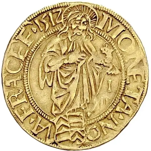 | Obverse description | Full-length facing figure of St. John the Baptist holding Lamb, small shield between feet, date at end of Latin letters legend. |