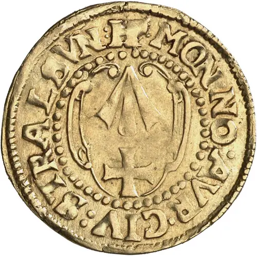 | Obverse description | City arms above cross in oval baroque frame. |