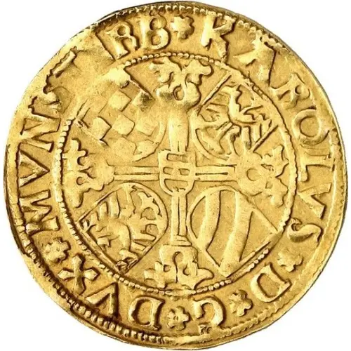 Ornate cross with small central shield divides the field into 4 quadrants, in each quadrant the coats of arms of Silesia, Glatz, Oels, and Jauer. Legend around a beaded inner circle. |