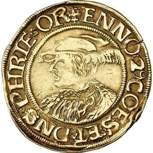 | Mô tả mặt sau | Ornate shield of East Friesland arms, date above. |