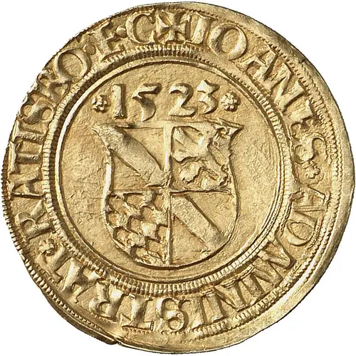 | Chữ khắc mặt trước | ✠ IOANES ❀ ADMINISTRAT ❀ RATISBO • E • C 1523 |