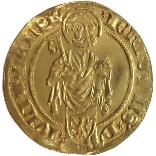 | Obverse description | Saint standing facing, small arms at bottom. |