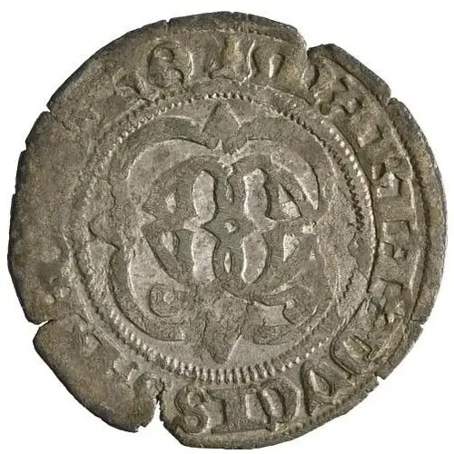 | Descrizione del dritto | Ornate gothic M inside a quadrilobe with points. |