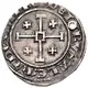 Cross of jerusalem (large cross with a square in the centre, with smaller crosses in each quarter part), surrounded by a beaded ring. Another beaded ring on the rim, with the inscription between the rings. |