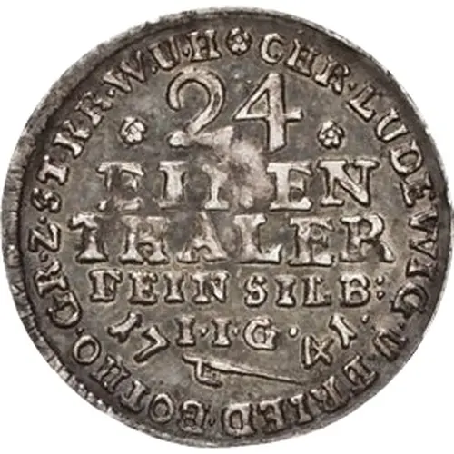 | Obverse lettering | CHR.LVDEWIG.V.FRIED.BOTHO CR.Z.ST.K.R.W.VH * *24* EINEN THALER FEINSILB: I.I.G. 1748 |