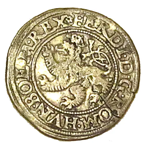 FERDI. D. G. ROM. HVN. BOEM. REX (Translation: Ferdinand I by the grace of god Roman, Hungarian, Bohemian king) |