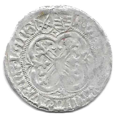 | Obverse description | Cross with floral ends within quatrefoil, in the angles C - R - V, within circle, two shielded arms on top. In outer circle the legend. |