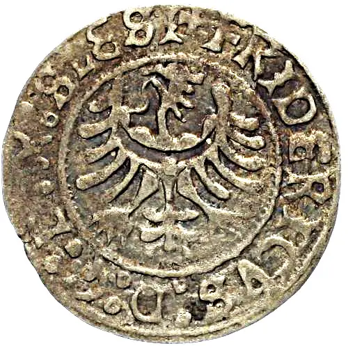 Obverse description Silesian eagle in circle, mixed Gothic and Latin letters in legend