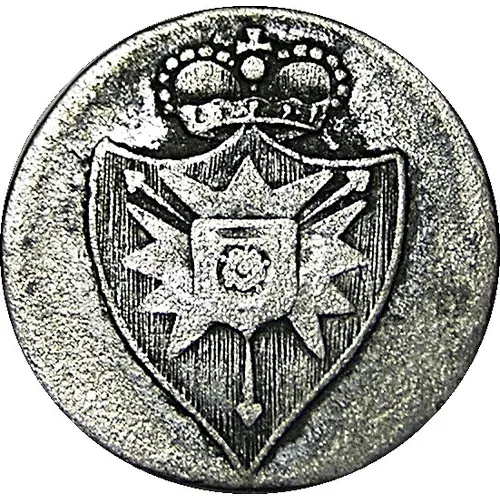 Mô tả mặt trước Crowned shield of nettle arms with central shield.