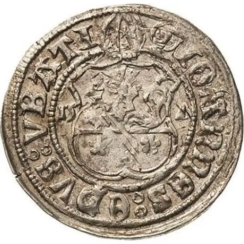| توضیحات روی سکه | Ornate shield of two-fold coat of arms divided horizontally: upper half of rampant lion left, below 3 rosettes, 3-digits date divided by the shield, legend around a beaded inner circle. A mitre divides the legend on top. |