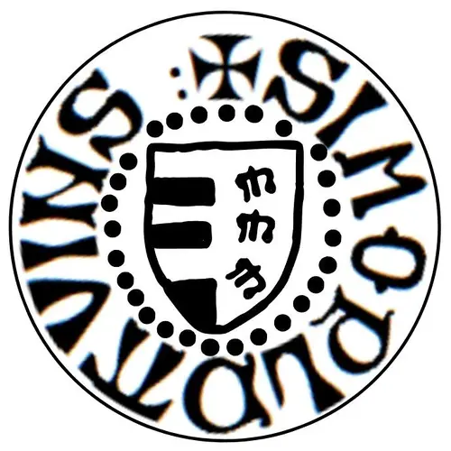 | Mô tả mặt trước | Coat of arms, a split shield, left three bars; right 3 lilies. |