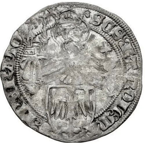 | Obverse description | Charlemagne over Aachen city arms holding or and cathedral |