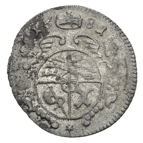 | Obverse description | Oval 4-fold arms with central shield of Öls in baroque frame supported by mermaid at right, princely hat divides date above. |