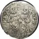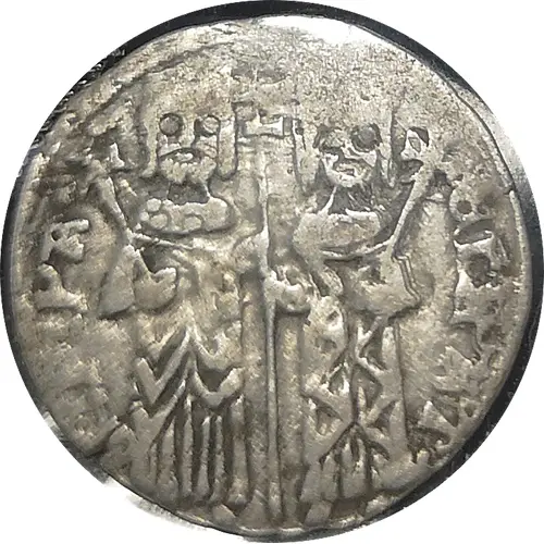 | Opis awersu | The king left, and the queen right standing opposite, with high, cogged crowns, wearing in splendid kings clothes, holding together double-cross and their free hands are on their breasts. At right legend: ч. мıаıл, and at left ч. срıна. __ __ |