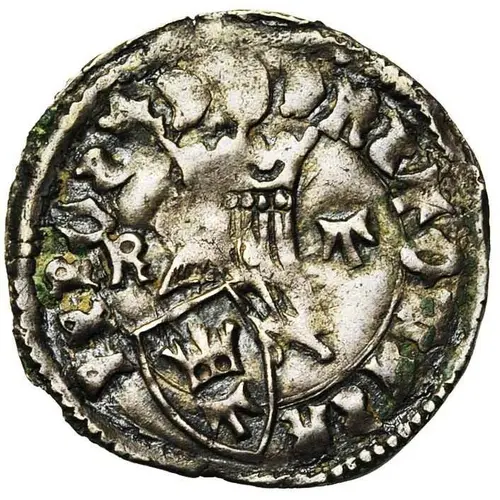 Obverse description Crowned, veiled helmet left. Left R (rex), right T (Tomaš). Below an inclined shield with crowned helmet.