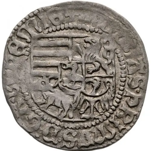 | Obverse description | Coat of arms of the king inside pearled ring. Escutcheon divided in four quarter fields: Árpádian stripes, Bohemian rampant lion with crown, Lower Lusatian bull and Lower Silesian golden eagle. Centre shield with the Corvinus family raven with a ring in its beak. |