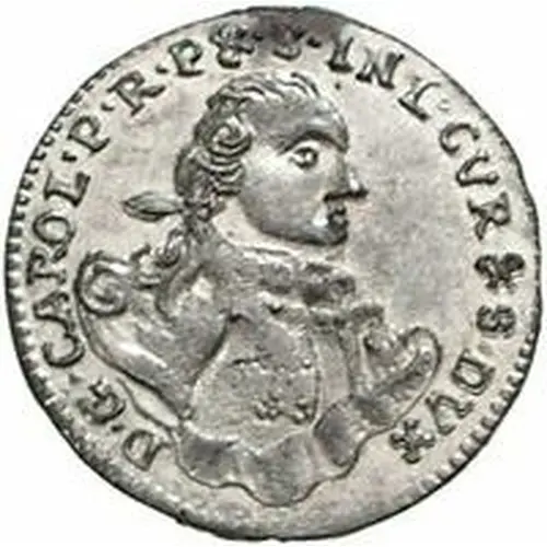 MONET · ARGENT · DVC · CVRLAND C - H - S 1762 (Translation: Moneta Argentea Ducum Curlandiae Silver coin of the Duchy of Courland) |
