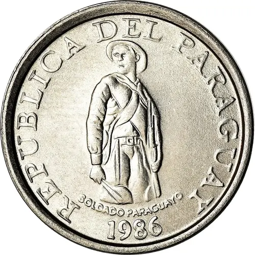 | Obverse lettering | REPUBLICA DEL PARAGUAY SOLDADO PARAGUAYO 1986 (Translation: Republic of Paraguay Paraguayan soldier) |