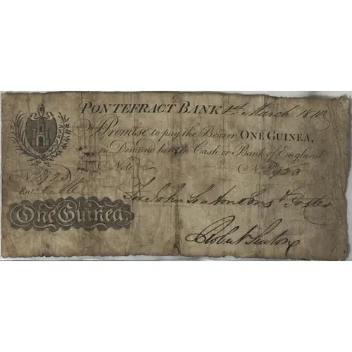 | Obverse lettering | PONTEFRACT BANK Promise to pay the Bearer ONE GUINEA on Demand here in Bank or Bank of England Note |