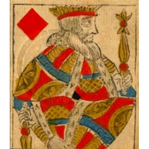 | Obverse description | Playing card (part) - king of diamonds. Handwritten face value and location. |