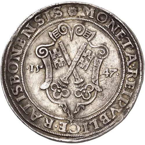| Obverse lettering | * MONETA: REIPVBLIC(A)E: RATISBONENSIS. 15 47 |