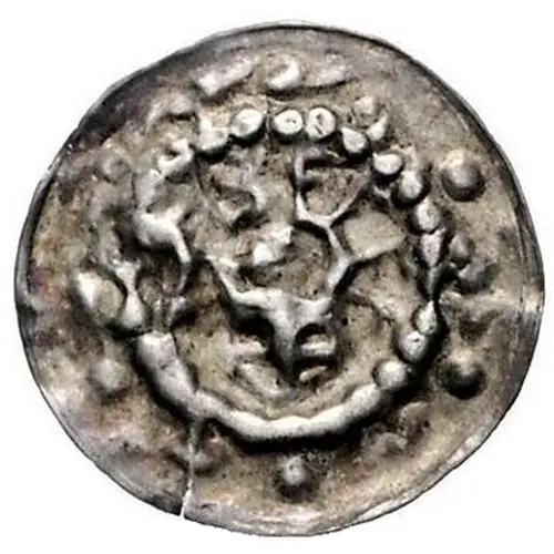 | Obverse description | Helmet in inner circle, in outer field alternately crosses and dots. |