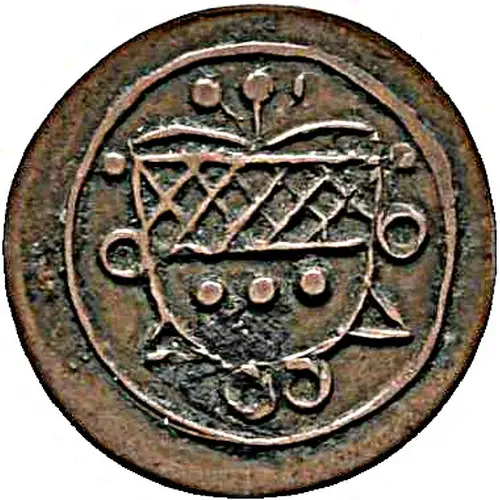| توضیحات روی سکه | City arms in rounded shield, annulet ornaments around. |